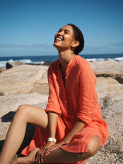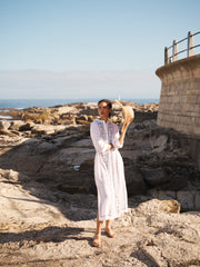 From the statement Tavira tile print on Portia and Sintra, to intricate embroidery and the saturated shades of cobalt, peony, and orange - every piece is imbued with colour and craft. Shapes remain relaxed, with gentle tailoring, fluid movement, and details designed to delight: gathered sleeves, belted waists, and easy, throw-on silhouettes...