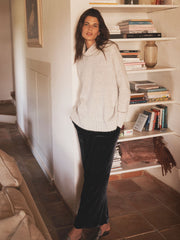 Soft, warm, quietly glamorous. For evenings spent at home with friends, good food and sparkling conversation, choose comfort with a touch of luxury. Think: an alpaca jumper - feather-light, cloud-soft - paired with velvet trousers that catch the candlelight. Relaxed, elegant, perfectly understated.