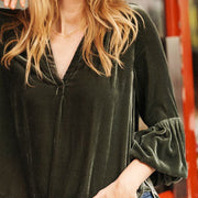 Meet Ophelia – an update on NRBY’s most-loved shirt shapes. Style and comfort combined, Ophelia is an easy silhouette with a flattering v-neckline, cut in a soft silk mix velvet. Simple, but with spectacular gathered sleeves. Push the easy elasticated cuff up to your elbows for a fluted sleeve look. Loose fitting, whether worn tucked in or tunic style - ready to be styled up or down whatever the moment.