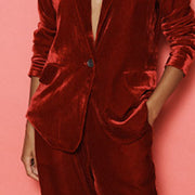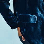 Available in new vibrant shades this season, say hello to the May velvet blazer. In sumptuous silk-velvet mix, May is cut to a relaxed-fit silhouette with peak lapels, single-breasted front that opens to a satin lined interior. Opt for a velvet suit look by pairing with our Thea velvet pants. Throw on over a white t-shirt and jeans, or wear alone…