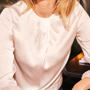 Effortless elegance... Patsy brings subtle polish to everyday dressing. Featuring a neat round neckline with delicate pleat detail; and subtle back opening all in 100% silk for a soft drape. Tuck into velvet trousers or wear loose and floaty...