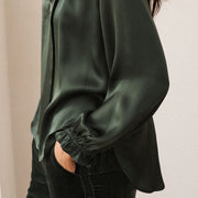 Your new favourite shirt… Meet Teagan. Crafted from fluid silk satin, this elegant shirt is all about ease and effortless style. With a flattering neck tie, soft gathers, and a relaxed silhouette designed to move with you, it brings a touch of sophistication to every moment. Dress it up with our velvet separates for evenings out, or pair with jeans for an elevated everyday look…